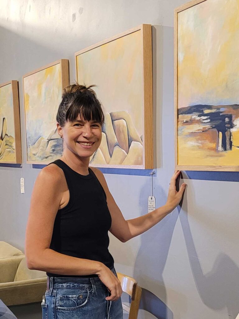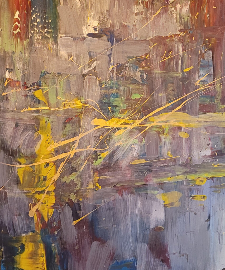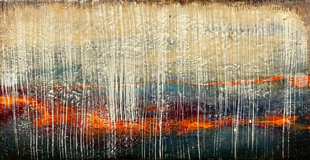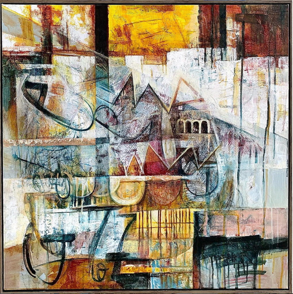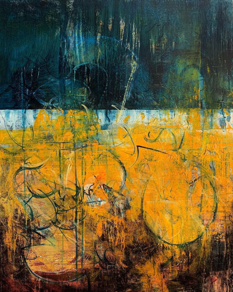 Her latest collection is a series of abstract works titled Beneath the Surface. The collection represents one of her overall themes in her abstract artwork which is that there are many layers to us all that we must unfold to really understand a person and in a metaphorical sense, the art in general. What appears on the surface is comprised of many complicated twists and turns in the creative journey and in one’s life. Digging beneath the surface often reflects the actual story of who or what is in front of you. Just as every painting evolves stroke by stroke and color by color as it takes shape, our life’s journey evolves over every experience and interaction big and small.