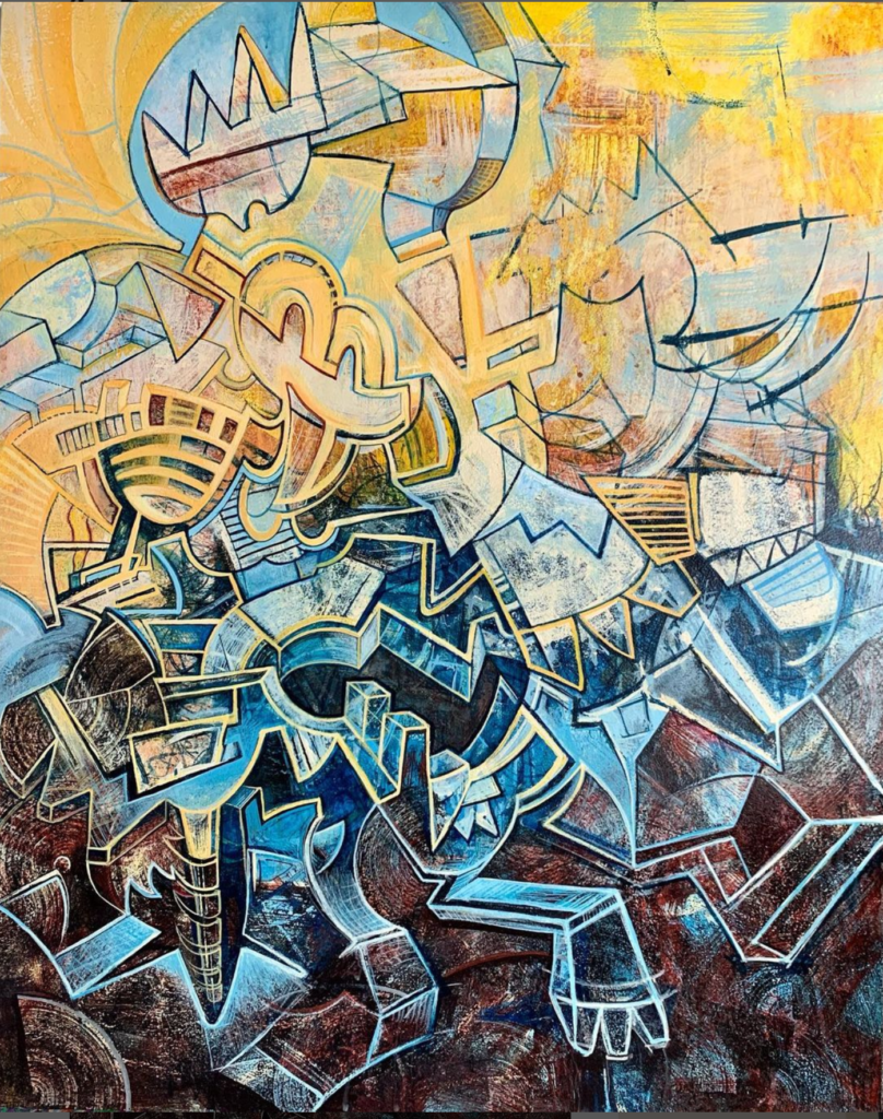 “I use painting as a form of expression and voice. I like to work with my subconscious in order to get feelings and emotions out through painting in order to stay sane. I can plan a painting but prefer to lay down the strokes and color intuitively and then pull out what I see*. That technique and rotating the canvas in the process give me endless possibilities and puts me in touch with my subconscious and the magic of painting. The theme of my work is often autobiographical and intermittently reflects my active interests in love, religion, literature, politics, art, and current affairs.