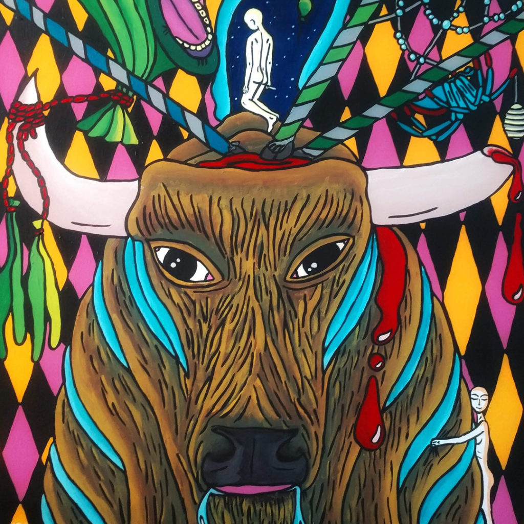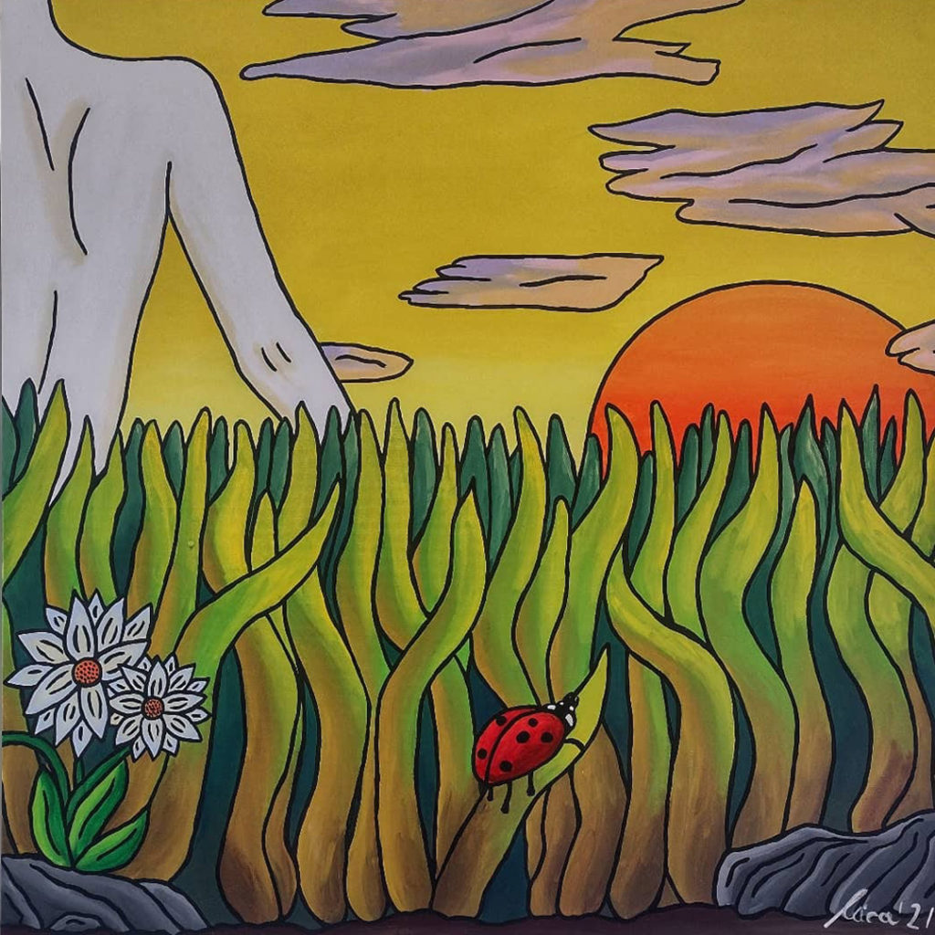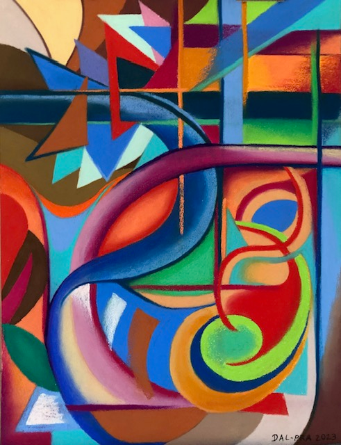 “Describing your art, your process, and what it’s all about is a pretty hard exercise. To me, my art is like an open diary. I never have a clear plan of what I am gonna do, I just follow the moment and capture things I experienced, reflections and thoughts I have about myself and the world around me. Sometimes, it’s something deep and intricate I’m working through; sometimes, it’s just a release of emotions through colors and patterns. I use mostly pastels (soft and oil pastels) for their strong bright colors and their fantastic texture. I love showing my art and learn what it evokes to people. So, dive in, and don’t hesitate to share your thoughts!”