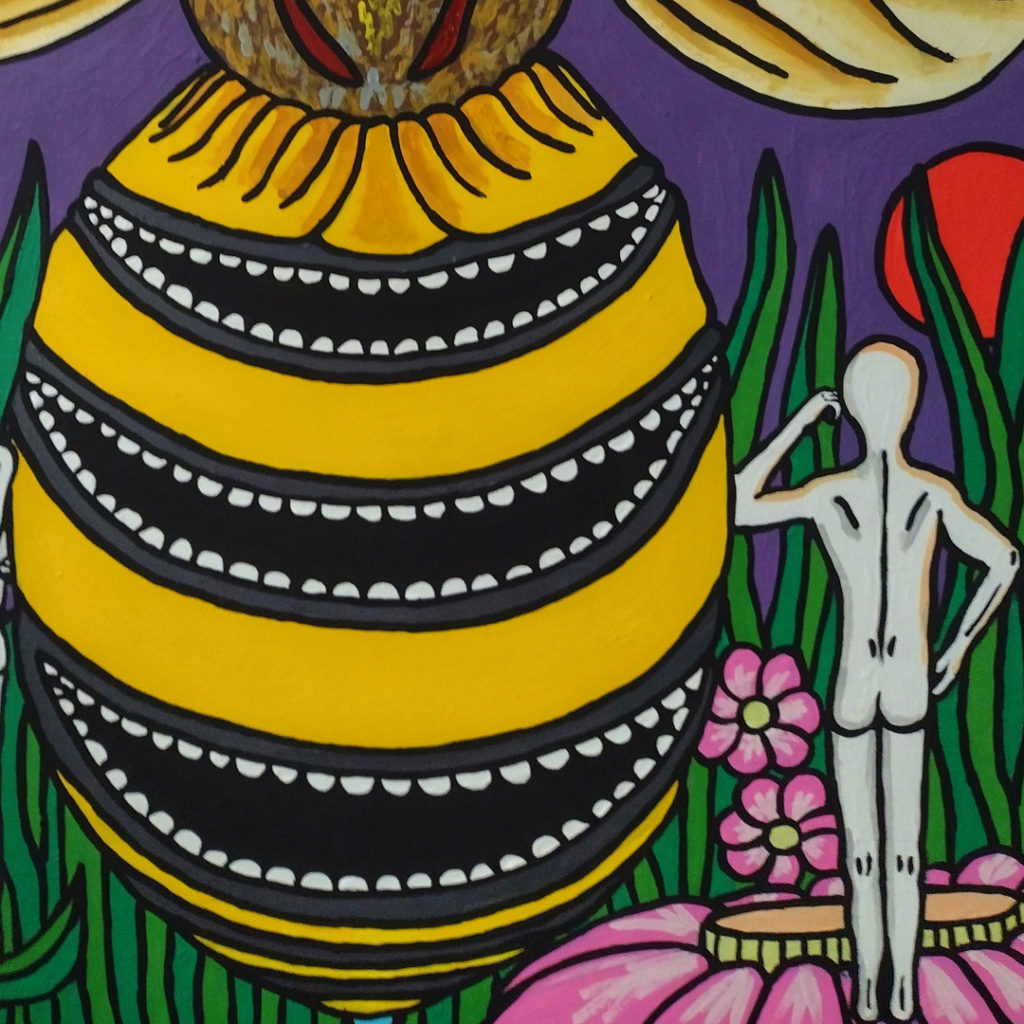 Stories are soul food. It is a fundamental part of being human. I’m creating storytelling art about society, politics, and the daily challenges people face. I like to use the entire spectrum of colors to catch viewers’ attention and then invite them on a journey through the painting where they can watch the story unfold. I incorporate plot twists and small hidden elements for the audience to find.