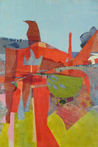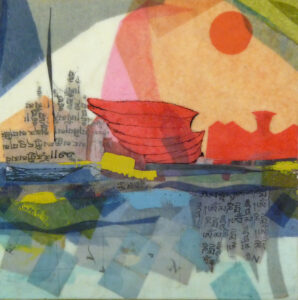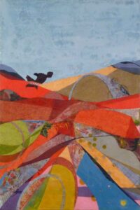 I started collaging during Covid when we were spending so much time at home. I was caregiving for my ninety-four year old mother and my husband, a Vietnam Veteran, who had Parkinson’s Disease. One evening, while we were all watching TV I decided to make some collages. I was inspired by a collage that a friend posted on Instagram. I discovered that the process of making a collage was therapeutic and joyful. I collage every day and find it meditative and transportive. When making an abstract collage I go through magazines, paper, and fabric that I have collected to find colors, textures, and patterns that appeal to me. I then cut them into different shapes and place them on the base until the collage has developed into a finished piece of art.
