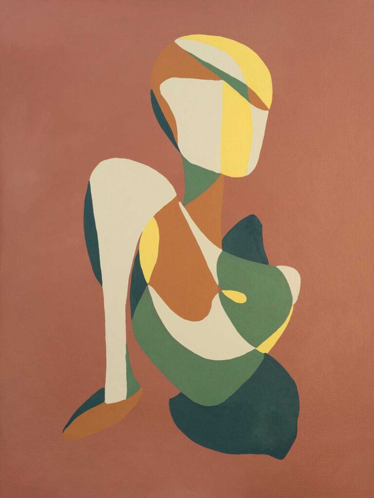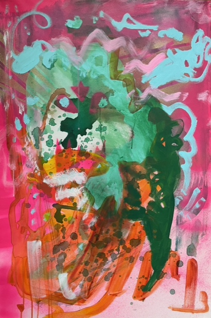 With a unique + controlled style, Carolyn has been painting for almost 25 years. Through thoughtful combinations of color + gesture, her distorted figures act as visual invitations for viewers to engage with her work on a deep level. Whether it be through intricate details or implied movement, she aims to create pieces that balance intrigue and beauty.