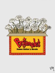 I grew up in Winston-Salem and currently live in Durham and am so honored to be able to share my art with you this month at Yonder! Yonder is one of my favorite cozy spots in the Triangle, and I love the way that they make space for artists of all kinds. When I’m not drawing condiment bottles, you can find me teaching graphic design classes on Monday nights at the Durham Arts Council, or working at Clarkston Consulting.
