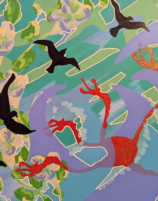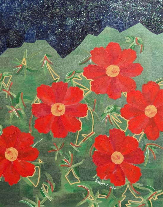 Robyn Scott currently lives and works in Durham, NC. She’s a former visual arts teacher working in acrylic paint, fibers, mixed media, and pen & ink. Her work focuses on a love for the beauty of natural spaces, color, imagination, and joy.
