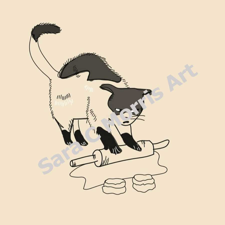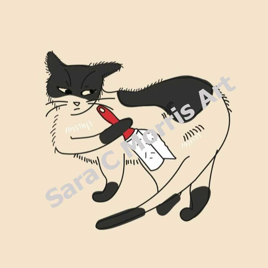 This collection is a mix of a few different series—some older pieces from the NC-Vased collection with a few new beers added, some from the Messy Kitchen Counters series, and a bunch of new work from my latest series, Cats Doing Things. I don’t have a cat, but I think they’re hilariously ridiculous and so expressive, so I tried to capture some of that in these pieces.